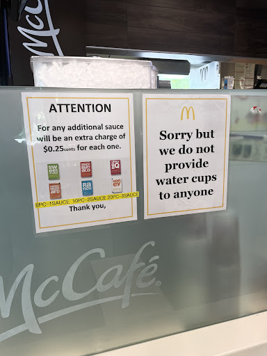 Read moreEarlier today, I visited this McDonald with my children, excited to enjoy a meal together. I ordered two kids meal along with a meal for myself. However, when I politely requested a cup of tap water, I was shockingly denied this simple request. The employee insisted that tap water was not available and that I had to purchase a beverage instead. And she pointed at the sign “we don’t provide water cups”