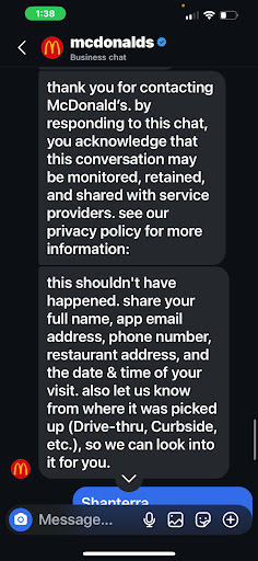 Read moreI visited the McDonalds here at this location with a friend to get a late night meal. We both ordered two different orders and the line wasn't long at all, it was only 2 cars in front of us. After waiting 5min at the drive thru menu we we're instructed to pull to the first window to place our order. When we got there we literally had to tell the employer what we wanted to eat several times because he couldnt comprehend what we we're asking for or either he was highly intoxicated. Our wait for the food was 15-20 min (I cloked it by going through text messages I was sending the whole time waiting for my order) while the employees cooked our food, which I didn't understand and then they didn't even give us the right meals. I was missing my french fries and drink and my friend had to argue with the manager about getting those things either replaced or re-made. They got upset at us like we we're asking for something wrong. I mean we did have to wait way beyond the estimated time so I found that very odd. The manager was really rude and there had to be only 4 employees working that night which I find unexceptionable. This location always has a problem if you're making an order on the late night and I've seen several bad reviews while writing one myself last night. I was so in a rage that I felt the only thing I could do was TWEET about it because I have a following of over 9,000 people online and quite a few of them expressed the same frustration about...