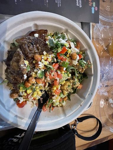 I ordered some kind of bowl with arugula, brown rice, chicken, and tzatziki sauce and it was so good. I’m definitely going back for more. You can get the food in wraps, bowls, pita pockets, there’s a lot of variety here.