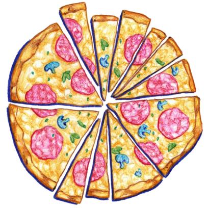 || Two, I admire the kitchen staffâs phenomenal ability to craft pizzas with such a wildly diverse range of slice sizes; we get a fantastic selection between 1.5â Grade School Pizza Party, all the way to ones so large, it makes you wonder if they were practicing a geometry lesson, aiming for acute angles but got obtuse ones instead.