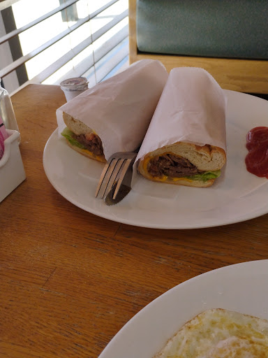 My boyfriend, friends, and I went there around 11:20am for a brunch kind of thing. The place was a little busy but no wait. The server was incredibly slow. Waited a good 10+ minutes before she took our order. My boyfriend had a glass of milk and there were chunks floating in it. Food took forever to come out and it kept coming out one item at a time. Half the stuff came out lukewarm. Took way too long to get our checks and even longer to check out. Their homefries aren’t homefries, they’re fried potatoes. If you read the fine print, you’ll note that they don’t serve ANY pork products. So, although the menu says bacon, sausage, ham, and scrapple - not a single one is legit. The menu should read turkey bacon, turkey sausage, fake ham, (not even sure how that’s possible) and something pretending to be scrapple. Within an hour of leaving, my stomach erupted in pain. I don’t advise eating there unless you only want to borrow the bad food they have to offer because, one end or another, it will be coming back...