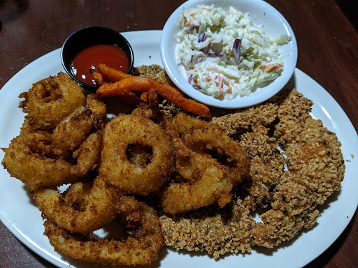 As a big seafood fan, I was also pleased to find Orchard Point oysters (Stevensville, MD) on the menu in a number of dishes. Our waitress pointed me toward the oyster platter entrée (six fried oysters + fries and coleslaw), and it turned out to be the perfect recommendation. Not only were the oysters huge, but they were also perfectly fried: Not too greasy, not too salty, incredibly flavorful, and cooked just right to achieve a crunchy exterior while maintaining the interior freshness of a "just off the boat" oyster. Absolutely sublime. Not only that, but I was also able to swap out entrée sides for free (onion rings for fries!) and the portion size was truly generous.