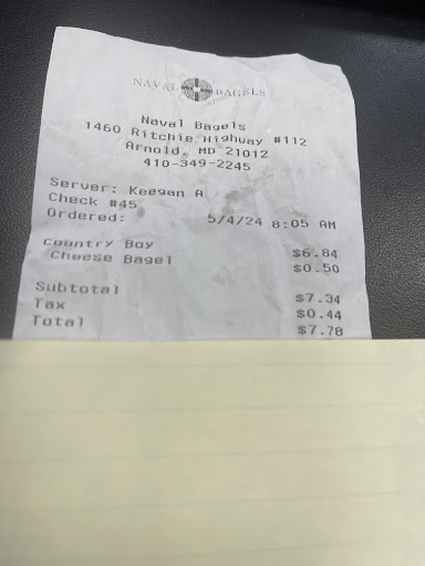 Ordered country boy bagel on cheese bagel toasted. Waited 15 minutes or more. Bagel not toasted, had to put microwave sausage egg on the bagel because when I opened it the microwave sausage egg was not even on the bagel on 1/2 of it. Not toasted as I requested. Called manager asked was I a regular customer. Then said there eggs and sausage are microwaved that’s how it’s done and have a nice day . Not returning will stick to Uber bagel where it’s not microwaved food. Naval bagels you can do better . Menu says 6.34 for country boy but I was charged 6.84 then .50 for the bagel. Absolutely ridiculous. No where does it say I would be charged 50 cents for the bagel. If I order bagel sandwich it should come with the bagel not charge extra. People check your receipt. Manager said he couldn’t find my receipt. So when I said well go on google and read my post because I posted a picture of my receipt minus my credit card number and I was going to go to the Annapolis location to speak to the manager/owner. Then the manager of this location got defensive and said have a good day and hung up . I called Annapolis location manager was great he could see my receipt where I paid. Refunded my card and apologized also said please come back and get a...