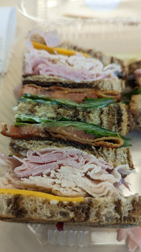 Jennifer, at the register, was most helpful in guiding my selection which was a California Club Sandwich with generous and Boar’s Head fillings of chicken and bacon, along with avocado, tomato, lettuce, onion and cheese on a croissant which, per my guide, could be replaced with a different kind of bread. I stayed with the croissant and it turned out to be a good choice given its compressibility and crispness.