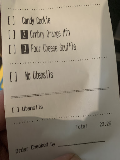 About minute later, another employee came by to tell me they were out of four cheese soufflés and would I like another flavor. Which is fine.