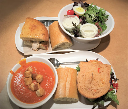 To rate the entire experience: the establishment was so disorganized. I came in with my best friend to catch up over breakfast. With my October rewards, I got a free bagel but their shelves were bare. No bread, and 3 bagel choices. I tried the asiago which was great. I ordered the pick two but my grilled cheese was luke warm. My best friend was not familiar with soups and asked the 2 cashiers what they recommended. They had no answers for her as she decided between two soups. Fortunately, one cashier offered to let her try the two soups, but only brought back one. My best friend settle for it: the potato soup. As she tasted, she asked the cashiers, "is there bacon in this?" They both blankly answered, "I don't know." Now, I let everything else roll off my back but my friend has many allergies, and the cashiers don't know their products. I waited to see if they'd try to find out, ask a manager.. something. Nothing. We moved on to get our orders and the guy calling the orders skipped around in calling numbers. We finally sat to eat. My friend enjoyed the soup but she said her avocado BLT was bland. I don't believe...