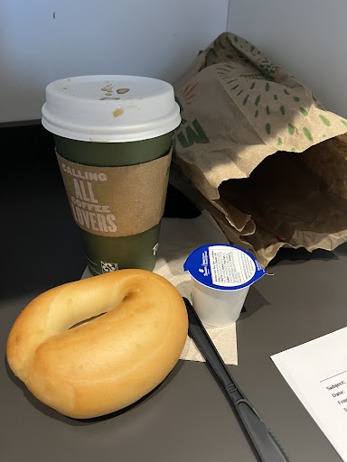 Read moreAlthough the food is still delicious, BEWARE what appears to be new management. Order 3 bagels toasted and sliced, 1 breakfast sandwich a drink and a frozen mocha. After 20 minutes the only things we had were the self serve beverage and a the breakfast sandwich from the lunch counter. However we did listen to the (what appeared to be ) new manager reprimand poor Emily (other employee) about how she didn't follow the poorly given vague directions on which register to put her drawer. We watched as the new manager pulled Emily to the front, while patrons tried to order breakfast at the busy counter, and asked questions after question (which obviously Emily didn't know but the manager didn't either) on how she was going to fix this and what to do now. After she dismissed Emily, the new manager pulled the senior manager over for guided on the situation and discover that because no transaction had taken place after the wrong drawer was put in this register, there really was no problem at all.