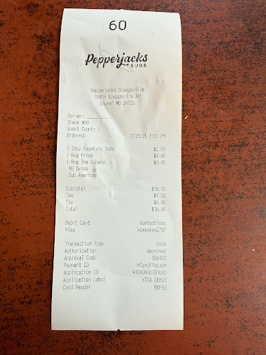Read moreWe saw a sign on the highway for Pepperjacks Subs. We thought why not, sounds good. We went. Loved the charm of the place. Went in and there were a bunch of people ordering ice cream. But it went fast. We got two subs. One Cuban, one with roast beef. Then my husband said a bucket of fries, I did say, let's try to share the regular. Good thing we did! The regular is an overflowing cup in the bag! We got a strawberry shake and a peanut butter explosion one. We sat inside, at a table by a window. I saw houses across the street, and said "it would be dangerous for me to live there" knowing this place was across the street! We loved it! I was taking snap chats of the place and sending them to my grown kids, saying we are going to come here again, that I don't have any pics on my phone to share. HERE IS THE BEST PART the service. I left my purse there. I was super distracted by some news. Then an employee Megan. Took time to post this on Howard County Eats. And keep it safe. I know a ton of people in Ho Co, and they texted me, my husband, and my kids. She took her time, to keep it safe, and let me know. (My number is no where in my purse I realize). So thank you for good food, good service, the other patrons in the restaurant seem to go there often and were very friendly, and we...
