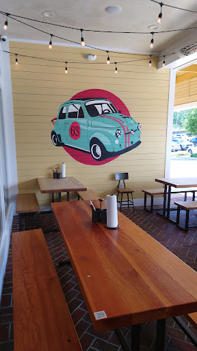 To go orders are pretty quick and take less than 10 minutes. There's plenty of indoor seating and nice long picnic benches in front of the restaurant.