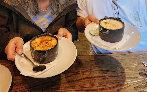 Read moreI was really hoping to like this new restaurant because the atmosphere is nice and the menu looked great. Well, I was very disappointed to say the least. First of all, we could barely hear the server because of the noise level, and it was difficult to carry on a conversation at the table. The food was just alright and very overcooked. We ordered the calamari appetizer and the menu said “lightly battered”. It was nothing of the sort. The batter was so heavy and crunchy, I had a hard time even tasting the calamari. We also had the grilled romaine salad which was pretty good. I decided to get the stuffed shrimp with crab. The shrimp were good but the tiny piece of crab on top was quite skimpy (could hardly taste anything) and for the price, I was expecting a better portion. My daughter has the expensive rack of lamb. It came totally burnt to a crisp and quite well done in the center. She did say it was tender but would have preferred it not so over cooked. My husband had the steak, which he thought was good and cooked to his liking. His mashed potatoes and my daughters also were tasteless and very lumpy. All in all we were not raving about our meals...they were heavy, and not delicately flavored or just totally flavorless. I don’t normally like to give negative reviews and maybe this place needs to settle out a bit, but when you are spending $150 on a meal, you want it to be fantastic. I might go back for a less expensive burger and give them another shot, but the noise level might...