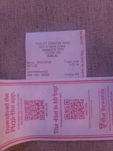 Read moreTerrible pizza even worse quality assurance, arrived here for a pick up, went in to pick up and pay they look for tips for a pick up??? What did they do to earn a tip??? Big sign on front door days dine In is counter service only so they won't wait on you if you and your family decide to go here for dinner, you got to serve yourself at the take out window, what a joke, the pizza was burned and super thin tough to eat and the pasta was hardly cooked under the burned top, this is pure laziness from the management, to allow your standards to slip this bad and for it to go this long is shambolic, pizza hut should have much better standards than this, this restaurant has been on the decline for a while and under the same management, people need to listen and stop going here, You might seem like you're getting a deal but you'll be annoyed at the food quality the overall service or the dirt of the restaurant or all 3, this place shouldn't be allowed to continue to do business if the toilets and customer dine in area is that dirty can you imagine the kitchen where people can't see, The manager should be held accountable and Fired immediately its borderline attempted murder with them standards, YOU...