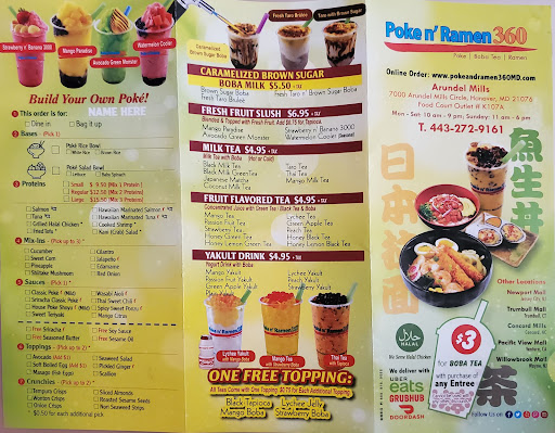 Read moreI'll start off by saying that I wasn't expecting too much from this place in arundel mills. They seemed to have a steady flow of customers but I'm glad we stopped by. Onigiri was neatly wrapped where the nori is separated from the rice so it doesn't get soft if not eaten immediately. So by following the steps on the wrapper, you remove the plastic and voila...Onigiri! Had the teriyaki crab, poke tuna and salmon onigiri's and they were okay. Perhaps it needed a little more rice vinegar in the sushi and a dash of furikake but it was fine. However their tonkotsu broth for their ramen was amazing. Very flavorful and probably took sometime prep and well worth it. Its a build your own bowl concept where the protein determines the cost of your bowl. The char Sui wasn't bad as it was fatty but also a little on the dry side. Wish they provided soup spoons instead of a normal spoon for the ramen. Food was prepared fairly quickly and well worth the wait. Pricing is less than other ramen places in the area and some place I would recommend if you have a craving for ramen. Having bubble tea is...