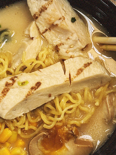 I'm so serious when I say this place has the BEST tapioca out of every shop I've ever been to. It is so wonderfully sweet and chewy, and now I lowkey get a little disappointed eating tapioca from other places because it is not as good 😭 My favorite item is their taro brown sugar boba, which has real pieces of taro in a nice paste? Cream? Whatever the case it is very delicious and unique, and all of their drinks are made with real milk unless you ask otherwise, which I love! Most places do not have options with real milk, which is a real gripe of mine as I do not like watery milk tea. All of the drinks are priced reasonably, especiallly considering that they use real milk which restaurants usually upcharge for 😿 As for food, the ramen here is also my favorite out of every shop I've been to. It's easily some of the best I've had in this area. The pork is incredibly tender and flavorful, not flavorless and tough like some other places, and the broth is also delicious. For me it is very comparable to Ramenya which is another popular ramen shop in this area. The prices are reasonable, the portions are generous, and the convenience for such fresh food can't be beat 😸 The sushi burritos and poke are also delicious, but the spicy pork ramen is still my favorite! I always recommend this place to anyone I meet, and I always HAVE to get a boba for me and my mom whenever I...
