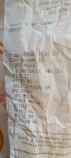 Read moreI like this place.. I take my son here whenever I come to Laurel to shop at Walmart. The workers are always so friendly and polite. I've never had a bad visit with them. Yeah, I'm going to keep coming here. It's Popeye's, lol So don't expect no pics. It taste so good, I don't have time to take pics, I'm trying to feed my hunger.. 😂
