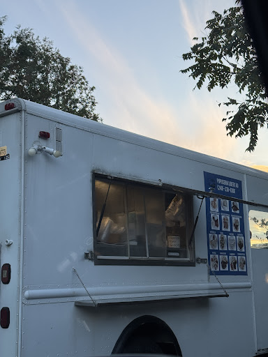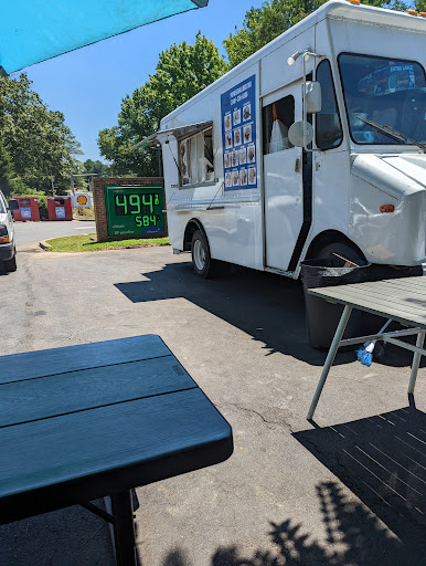 The truck is inside the BP gas station parking area, left of the convenience store. There's a picnic table with umbrella if you want...