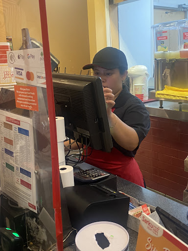They have bottled or fountain drinks, more than enough food for what you pay for. Quick and efficient! It’s a steal!