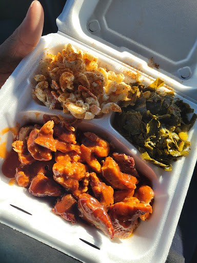 One Asian man cooking soul food behind a bullet proof glass. Not even one chair to sit and wait for your food. Go back to your car if you want to sit. It seems like he has an attitude but I think he just a busy one man band. Wish he would put on gloves when he fixing the food because he running from the kitchen to the cash register. However, The Food is Not bad at all! The food was flavorful and not salty. The greens were pretty good, Mac and cheese (not baked) but tasty. And the potato salad was surprisingly good. I will be back! Now the pork Ribs are a little fatty but cooked well and the barbecue sauce ask for extra because the flavor is memorable. Brisket is tender maybe too tender but not bad either. 4 for food because service is 3 and the atmosphere is not ideal. Varies prices for...