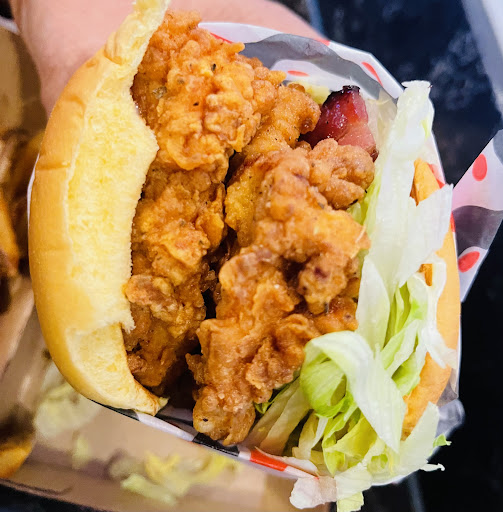 Ā Ā Ā Read more1st Picture Honey Butter Chicken Sandwich (Inferno level) which was not really HOT! 6/10 ā¬ļøthis was a family memberās sandwich. 2nd Picture Chicken tenders (8/10) doesnāt come in a meal. (Just tenders and bread) 3rd picture honey butter chicken sandwich no heat, sweet very buttery needed something mayo, lettuce none of that was offered. Fries salty and soggy.(4/10) 4th picture roaming rooster sauce not much to it taste like honey mustard without the tang some spice but not to hot. (5/10) Everything was sold separate which made it expensive. (I spent almost $40 on 1 sandwich, 1 order of tenders and 2 fries) I will say the fries come in cup in a bag so could be shareable. Customer service was okay. Gentleman as friendly. There is 1 table outside to eat and a few bar stools...