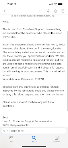 I was stunned. I’ve had situations at other restaurants where they’ve offered a small gift card or at least something for the trouble, especially when I had to drive an hour round-trip. This wasn’t that. Her tone and demeanor made it feel like she was doing me a favor by giving me back my money for the raw chicken they served me.