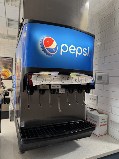 Drinks machine broken. Cashier didn't really understand anything we said.
