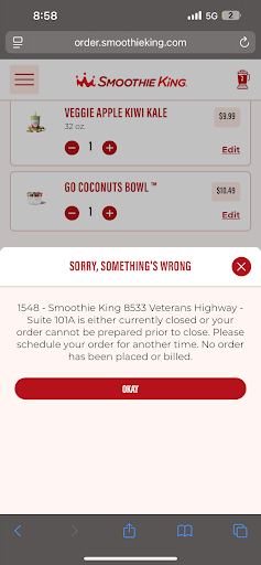 Read moreThe owner here does not understand customer service. I asked for a smoothie without berries and got a smoothie with berries in it. The smoothie was remade with just banana like I asked but was blended with so much ice and water that it literally tasted like an unsweetened snowball. I brought this to the owner Nikia's attention and she lost it and wanted to fuss me out about taking away berries instead of fixing the issue she decided to argue with me about my order. It got to the point where I just asked for my refund and left. Never did she apologize for the mistake or bad smoothie, to her it was basically my fault that the smoothie tasted the way it did. This was a terrible experience with...