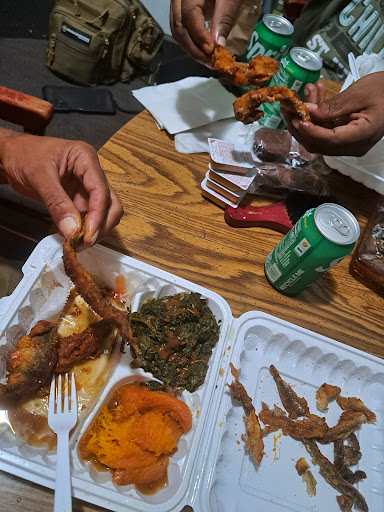 So disappointed. Just left there (8:30 pm). We were craving some good soul food, and- hot fried fish. We googled "Soul Food" and this place came up. Upon entering we knew we were in what New Yorkers call a "Hole In The Wall" That was fine with us because they usually have great food at reasonable prices. Not the case with this joint. We eat out pretty much every weekend and are use to paying around $100 for a good seafood dinner. We asked specific questions about the food since it was our first time there. Okay let's get to it. I ordered a fish sandwich. It was $10.60 for a few small pieces of very obviously refried, yet STILL cold AND salty fish, even the bread was hard. My husband ordered the catfish dinner which was a little better. It was $19.00 for 1 piece of fish, collard greens , and macaroni and cheese. The fish was good, the collards would have been fine had they not been soaked in vinegar, and the mac and cheese like most places was more mac than cheese. We also ordered a slice of lemon cake since it said homemade, and looked so good in the picture. However, that to was a disappointment. It was $4 for a small slice of store bought cake. We know, because we watched her cut it from inside a box. And to add insult to injury we wouldn't have even got the cake had I not checked our bag before leaving. You would think after forgetting they would have given us an additional slice to make up for forgetting it or just extended common courtesy. But NO she told us to enjoy our meal, and sent us on our unsuspecting merry way- $34 wasted. On a good note the lady was nice, but the food was unappealing, and the fact that she knowingly sold refried old fish just left a really bad taste in our mouths. We truly wanted to leave a great review but as most of you who follow us know Im a Math teacher and teachers in the county network all the time so our reviews are always on point. Ill pray for this establishment but we wont be back. Gonna try this Crafty Crab place next week. Stay...