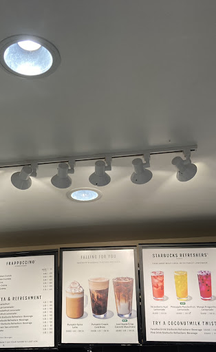 Read moreOk…Starbucks and for that matter Target for that matter should be ashamed. There were about a dozen flies buzzing around the counter and light fixture above. Just see the image below…all the black dots on the lights are flies. As I looked around it was probably the dirtiest Starbucks I’ve ever been to. There was trash all over the floor. $10 for a coffee and you can’t keep the place clean!!!! ...