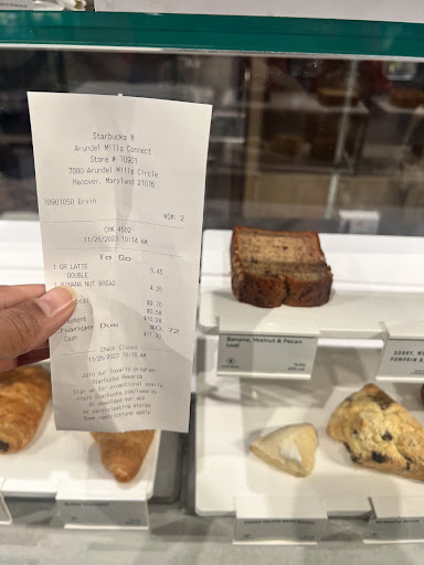 As a customer who recently visited the Starbucks store at Arundel Mills, I feel compelled to share my experience regarding an issue I encountered during my visit. While the ambiance, service, and quality of beverages at this Starbucks location were up to their usual high standards, I was disappointed to discover an unexpected increase in the price of my order without prior notification.