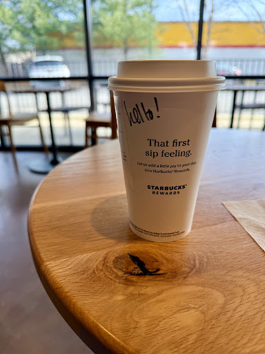 Read moreWent to this Starbucks using my GPS on Saturday, Feb. 8 at around 7pm. The store had 2 ladies and a kid in it waiting for their drinks (and they ordered a lot). It appeared that they had 2 people working the drive thru and only one working the people inside. I was waiting, and waiting and waiting for my daughter's drink. Oh, and when we ordered it, the 20 year old boy behind the counter didn't ask her her name for the cup and did NOT say thank you. A woman walked it, ordered, and got hers within 2 min! I asked the 20 year old what was going on and he said they make the drinks in the order they were received. I told him that isn't the case. Then, he told me that he hasn't even had his break yet! Really?! I could care less. He was VERY rude. Then, the other guy puts the drink down and says what it is under his breath. I said, is that mine. He looked at the cup and there was no name on it. I said, that's because he didn't ask or say thank you. The 20 year old told me to enjoy my evening. I don't recommend and the manager should re-train the staff to be customer centric...