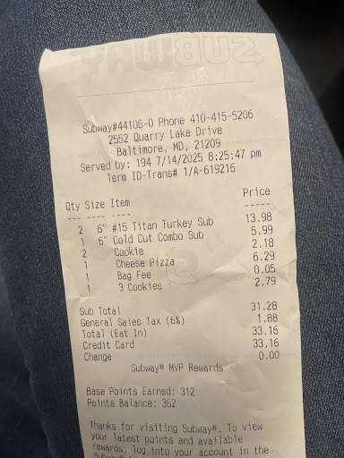 Read moreBunch of thieves, I thought before I was cheated but it was my fault I told him I didnât need the receipt and just used Apple Pay got home seen my charge was like $43 for 3 kids and 1 adult mmhmm seem far fetched. Especially since I only get (3) 6in subs and a pizza. Today I got the same only thing changed. Since I got the daily special $6.99. That comes with chips or 2 cookies, I added 3 more cookies so each kid can have 1. Got to counter learn only 1 of my meals would be the daily special ok cool. But then he charged me the full amount for the sub and 2 cookies. I asked for 3 additional cookies because he said they come in packs of 3. It wasnât until I got home I remembered the recent scam. Checked my receipt and yes he cheated me again. It will be a cold day in hell before he gets luck, karma is an itch. Money not the problem itâs the fact he literally ok with stealing. Like most places you can see whatâs charged before his machine is different you only see the...