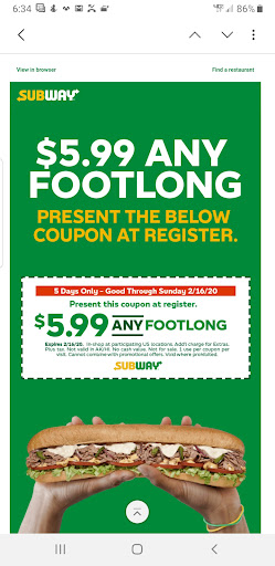 ย ย ย Read moreSince they installed a oversized flip cover over the meat,You can't see the quality and the correct quantity. Why didn't they put the same cover over the toppings? I asked for a ham and turkey and got 4 slices of ham and 2 slices of turkey. I think either the owner or manager tells the employees how to prepare the sub. When you are trying to scam the public, you will get what...
