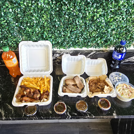 Okay, so this place is pretty bad. I ordered the pulled chicken, brisket sandwich and the potato salad with two sauces on the side. I asked for the tangy sauce and the hot bbq sauce. When I got home and tasted the brisket it looked and tasted like the brisket you get out of the tubs at the local super market. There wasn't hardly any smoke to the meat at all. Now had they used Hickory or Mesquite you would have definitely been able to tell. They have a more pronounced flavor of bacon with mesquite its more of a hearty earthy flavor. Now had they used Cherry the brisket would of had a more reddish tint with a sweet undertone. Pecan the same as the cherry with a slightly sweeter flavor profile minus the reddish tint. The pulled pork was covered in bbq already which I knew was going to be a red flag. Who in the world puts the sauce on the meat before they serve it. That’s the entire reason why they ask if you want sauces on the side. You never ever EVER put the sauce on the meat. In all the years I’ve always been told sauce hides your imperfections. The pulled chicken was bland no seasoning and it also had sauce again the chicken had literally no smoke. Now I was expecting them to run Apple wood with chicken Hell at this point I would have settled for any smoke profile at this point. Now to the sauces, now coming from KC these were by far the worse sauces. The one that was “tangy” tasted like apple cider vinegar with maybe a maple syrup mix. The hot bbq sauce was just unbearable, I can't even describe what that disaster was. Overall I will never order bbq from this establishment again. Oh yeah the bread was just white bread not toasted with butter...