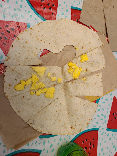 (THIS TACO BELL IS A GHOST TOWN SOME NIGHTS WHEN THE HOURS SAY THEY ARE OPEN. VERY POOR COMMUNICATION ^^) I like Taco Bell. They have good deals and if you download their app it's the same experience as going inside using the screens. Depending on the shift and who's making it for the day you can have differences in quality and proper proportions of the ingredients. Luckily my experience with this Taco Bell has been good. I can't say the same for the McDonald's across the road, but all restaurants have their good and bad days. The people you hire, how tired/motivated they are, and how busy it is can all affect your order. Occasionally there will be low inventory of certain ingredients. One time I went they didn't have soft tortillas and as inconvenient as that is, I went about my day just fine and the next day I went back to get some good food. Try their breakfast. I got the Grande breakfast burrito and was impressed. It's been 10 months since I left this review and my review still stands. But I had to add this picture of a time I went two weeks ago and got home. Let's just say my breakfast quesadilla was empty and I was left empty. If you're going to work at Taco bell, at least give some sort of portion. I don't even know if that's a whole egg in there and the tortilla was stale. I'm not nitpicking I'm just being honest, this was one of the worst experiences there yet and I'm not even angry! Just...