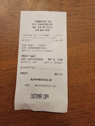 Read moreI had the pleasure of carrying out from Tamberino's on my way home from an event. You can expect pizza dough with the perfect bit of crunch, tasty pizza sauce, quality cheese and other toppings. We asked for extra cheese and they did not disappoint - to my surprise, they understand what "extra cheese" means, and the amount of pepperoni was complimentary. We also ordered a cheese steak and again was beyond pleased. Tamborino's rolls have the perfect amount of crunch on the outside and are fluffy and fresh on the inside. Moreover, it was obvious that Tamborino's uses fresh beef, and you can taste the freshness. This restaurant is more than 30 minutes from my home, and we will definitely be making the trip more often or finding excuses to pass by to carry out again. I can only speak for the cheese steak and pizza, but I am eager to try other items. If you are looking for high quality, homemade taste in pizza and subs - You Must try Tamborino's. You are sure...