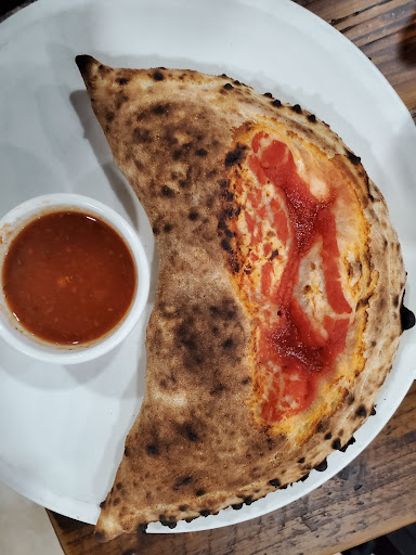 I ordered the Pesto Calzone, he ordered Angelo's Special Pizza. Portion sizes were very generous. We both enjoyed our food, but there could be some improvement - the calzone was nice but some of the dough was a little chewier than preferred, and he said the same about his pizza. For him, the mark of a good wood-fired pizza is the charred bits on the dough and crust, which it did not have. Both the pizza and calzone could have baked in the oven a little while longer. 4 Stars.