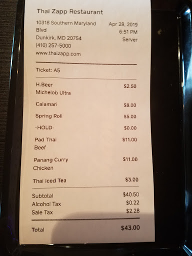 This place is unbelievable! I just stopped in for dinner after google suggested Thai Zapp. I hadn’t heard of it before. I am blown away, honestly, and I am not easy to impress with Thai food because I tend to be picky about it. The restaurant is the cleanest one I have EVER seen, it is completely spotless. That is without exaggeration- it is absolutely pristine. It is beautifully decorated as well. The lovely woman who served us (possibly the owner?) was an absolute doll. She was so friendly and kind and upbeat. I paid attention as well to the other tables and how she interacted with them and she was just so wonderful. A baby was frustrated and cried and she said “oh sorry, am I keeping you waiting?” In the gentlest voice. She directed some other customers who had been there before to “their” table, wished happy birthday to another woman and told her to come back on Friday for something she was out of. Just so friendly and kind and welcoming. I can sometimes feel weird in social situations and this place felt like being at a friend’s house. Now the best part- the food! The atmosphere alone I would come back for but the FOOD! It was so good! Just absolutely beautiful and fantastic. I don’t even have words for it- it was that good. Very flavorful, cooked so carefully and perfectly, just every bit as stunning and pristine as the rest of the place. I am typically picky about Thai food as I was lucky enough to grow up with really good Thai food and this is the BEAT Thai food I’ve had in YEARS. I am thoroughly impressed and will absolutely be back (and tell everyone about it!) Thank you Thai Zapp for such a wonderful dinner and such amazing service. This place is a complete gem, you are missing out if you skip going for sure. Stop in, you will...