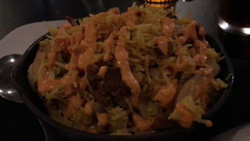 I ordered fried oysters (which they had). They were fried in Panko breading but tasted a little burnt (very dark coffee color) and came with a TINY amount of Buffalo Ranch dipping sauce. Five indiscernible oysters stuck together. My entree was two crab cakes. I had them here once before and they were the best I ever had.This time they were just OK - no texture and little flavor. They were supposed to come with bell pepper couli, hash of potato, corn, bacon and kale. Except for under-cooked potato cubes that looked like they came from a frozen bag I saw little else. Definitely no kale (which I love). Not the "hash" I was looking forward to.