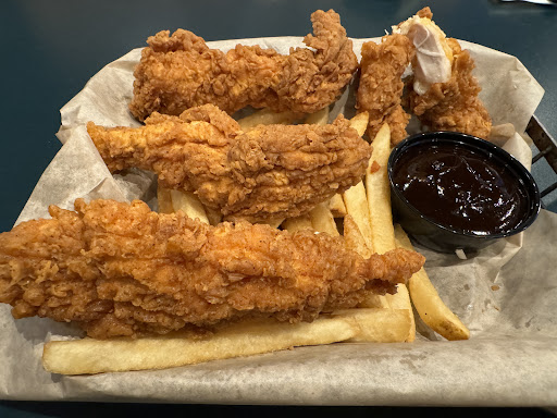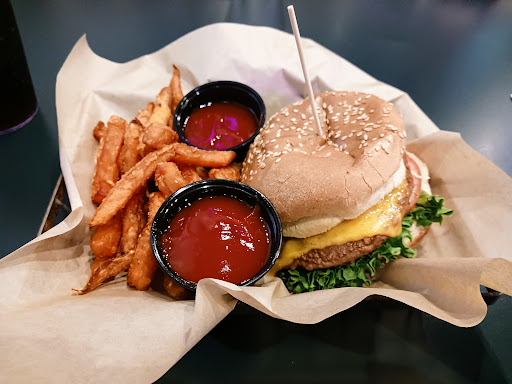 Read moreMy husband and I decided to eat here last night. Food was over the top too salty. I had to drink something after every bite. If I had not been so hungry I would have sent it back. I ordered the blackened chicken wrap and my husband the cheesesteak. Once I removed the meat and lettuce from the wrap it was better. You should never add salt to anything that has parmesan cheese. I felt like they made the wrap and added salt before they rolled it. I initially ordered set potatoe fries. It came with regular. So salty I almost could not eat it. I mentioned to server about the fries and how salty the whole thing was. I told her I would keep the regular fries but do not charge me for the sweet potatoe ones. She said ok. 5 minutes later she was back with a basket of sweet potatoe fries on the house. Those were perfect. I did my happy dance as I ate the first few. They did not charge us the extra dollar. My husband tator tots were very good. However his cheesesteak sandwich was very bland. He substituted mozzarella for the flat iron beer cheese which may have had something to do with it. The waited had asked if he wanted double meat which he declined. After getting the sandwich he wished he had said yes... not enough meat in it. Also no green peppers which he expected and very little grilled onions. Overall he said it was OK but did not want to necessarily come back for another. Finally the music was so loud I could barely here my husband, unable to carry on a conversation without practically yelling at each other and leaning across the table. And we were on the other side of the room. I did not see salt and pepper on any table. And we had a tv but no idea how to change...