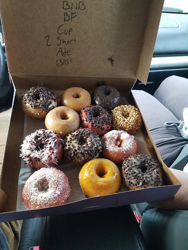 Great experience at this small donut shop. Stopped early in the morning (8am) thanks to early opening. Bagels and egg sandwiches not served yet as of March 2023, menu offerings to expand within the next weeks. We had the PB chocolate chips donut which was A-MA-ZING. Warm cakey donut with a sweet glaze and mini chocolate chips! We also tried the blueberry glaze and a plain Jane. Donuts are served warm and even can be brought home to be frozen/reheated. Owner was great. Good deal: $9 for a delicious box of warm donuts. Definitely with the drive, sweet stop on the way...