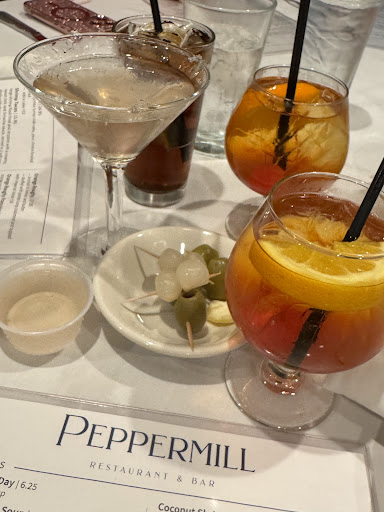 Read moreRoaches! Gross! Horrible experience! Went there with my girlfriends for an event and was grossed out that a roach crawled up my arm! Smells like aged urine, like an old pissy phone booth there. Dirty old worn carpets and sagging smelly seating. Bathroom was out in the hallway lobby because the building was shared by other offices. Peppermill does not have a restroom of their own! There was a creepy-looking man standing around in the lobby outside the restrooms just standing there. We don't know what was going on with that. Me and my girlfriends are middle aged but very attractive and were frightened, plus the bathroom was filthy, smelly, gross! The restaurant was full of really decrepit people. We can bet they had urine incontinence and/or fecal accidents on the seating and/or floors. You have to walk past the tiny filthy open kitchen to go down a long hallway and out a door to a public lobby to get to the filthy bathroom with 2 tiny stalls. ( If you are not tiny then you will not fit in the stall.) Low and behold 2 cockroaches appeared in there! We felt like we were in a government nursing home for the insane by the way the drunks were so loud and yelling at the bar, and by the looks of the servers and clientele (We think the bulk of the clientele were demented or hard at hearing.) We overheard a family complaining about their food. Oh yes, the food was very cold, tasteless, disappointing. We are never returning there! It's a shame because it used to be a good clean restaurant in the past, but not...