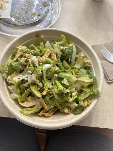 The young lady making the salad had on a long sleeved sweatshirt under her work shirt and the sleeves hovered past her wrists and directly over the salad mix she grabbed and mixed in the bowl with her gloves hands. As she leaned over to grab ingredients she leaned directly over the bowl with her shirt touch in the bowl. That is nasty and unsanitary. She made a new bowl but after the experience and having some wilted pieces of spinach and lettuce I was completely disappointed with the salad and wonāt order again.