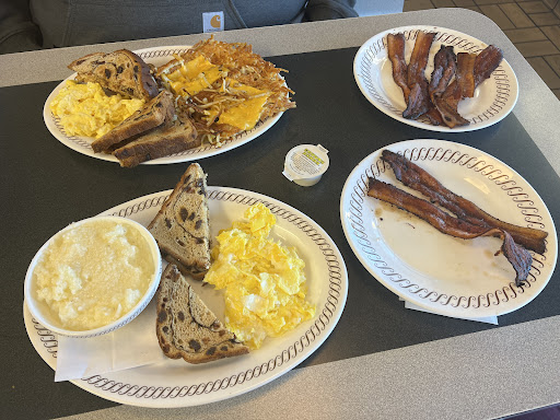 Read moreThe food was good, as usual. Waffle house has always had a consistent taste, but what I am rating is the customer service. We arrived, and they weren't too busy, and they had 3 cooks, and 4 servers, so they looked to be staffed perfectly fine. I ordered an all star breakfast, hasbrown bowl, ham egg& cheese sandwich, and a waffle with chocolate chips. Whole we were waiting I asked for 2 coffees, for my wife and I. I'd like to add that the waiter was not rude, or unpleasant. We first received our creamers.. waited about 10min and then she gave us our coffees, while bagging our food. At that point we were wondering what was the point of giving us the coffee's we should've just taken them to go. Anywho, we proceed to drink our coffees, and head out. Once we got home we noticed that the waffle from the all star breakfast was missing. All in all, I don't see myself returning here anytime soon. Do keep in mind that this was the same place that laughed at my face when they had messed up my...