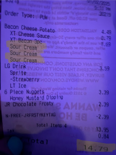 Read moreWendy's Pasadena is the worst "fast food" restaurant in the area. They are slow and the manager is rude. Went through the drive through on a Friday. Could not understand one word the order taker "manager" was saying. I kept asking him to repeat. Finally told him all I could hear was "mbmbmbbmmbbm". He then proceeds to tell me to leave and go to Taco Bell, he was not going to serve me. I got up to the window and noticed the car in front of us left without getting their food. I asked the "manager" what his name was and that I was going to report him to corporate. He gave me his name and said go ahead, He then proceeded to tell me that I shouldn't talk to the people who make my food like that. Excuse me????? Did you just tell me that you do something to the food of people you don't like???? I was a customer service manager and would never treat a customer like that. Apparently, he told the people in front of us to do the same as they were in front of us at Taco Bell. Thank you to the people in the black Ford SUV for paying for our meal. I am sorry you had the same horrible experience. Oh, and by the way, the people at Taco Bell were very nice and said thank you to Wendy's for sending customers to them. It's bad enough that Wendy's is way more expensive than their competitors, but to rudely tell customers to go elsewhere is just unforgivable. As this particular Wendy's is never busy, I can only assume this happens more often than not. Congratulations, Wendy's. You lost at least one customer. We will NEVER go to any Wendy's again. And ZERO...