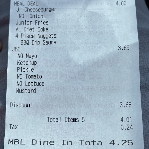 Read moreFINALLY!! This is the first time in forever that I have went through a drive through and they got the whole order right. Unfortunately my family and I, are not into condiments (ketchup,mustard,ect) so I have to tweak the order everytime I come. The gentleman who took my order was pleasant, the cashier named Maria was so sweet and you can see the kindness in her eyes. The best feeling was when I received my food and everything was perfect! I didn't have to inconvenience myself by going into the restaurant to get my order fixed. Many people will say whats the big deal? Its a huge deal when you have to do it everytime. And that speaks volumes in my book. From the man who took my large order, the cashier Maria and even the cook... they listened and...