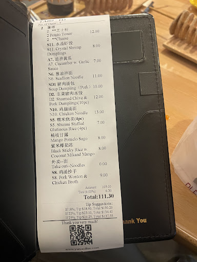Read moreThe place is a lot bigger inside than it appears. Simple tables, benches and chairs. Little uncomfortable after sitting for a while. The server was very patient, trying to explain what items were, what were soups vs just noodle dishes, etc. The food was good but our intention was to share appetizers and have our meals, but there was no rhyme or reason as to how dishes came out of the kitchen, sometimes multiple things at once, sometimes a single item. We had to guess what things were, and ended up sharing everything including soups! That said, we enjoyed it! Of all the items we had, the shrimp, and the pork/mushroom dumplings were delish. The sesame paste noodles as well as the chicken leg dish were also hits. The noodle soups were also very good! We do not recommend the duck. It was hard to chew and most of it was bones...