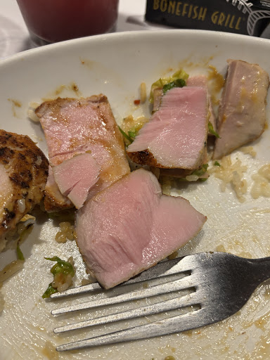 Ā Ā Ā Read more4th visit to Bonefish Grill. Our 1st was in VA, where we fell in love with Bang Bang tacos! Once back in our home state of WA, we couldnāt wait to return. One order of the shrimp tacos is quite enough for 2 people along with a shared appetizer and the bread. The fried cauliflower is EXCELLENT! Next visit we tried the seasoned Brussel sprouts, which were a huge disappointment. They were completely charred and unpalatable. A family member goes āga-gaā over the Mac-n-Cheese, and we had to try it. It was, without exception, the worst either of us had ever tasted. It was undercooked, lacked any semblance of any cheese, and basically dry and tasteless. We left the restaurant feeling money had been tossed away. The bread was, as usual, quite delicious. Servers/wait staff were limited for a weekend, the dining room was only 1/2 occupied, and excessive time was spent waiting to order, waiting for our food, and waiting to pay our bill. In previous visits, we have been served by āJacob,ā who has been conversant, personable, and appropriately interactive. For this visit, he again was our service worker/waier/server and was stretched too thin by our observations of dining room workers on duty. He never said a word about work conditions, poor staffing, etc., but took care of us with a professional attitude and engaging smiles. Unfortunately, we have no plans to return to this location. Sorry, but thatās the taste (or lack thereof) left in...