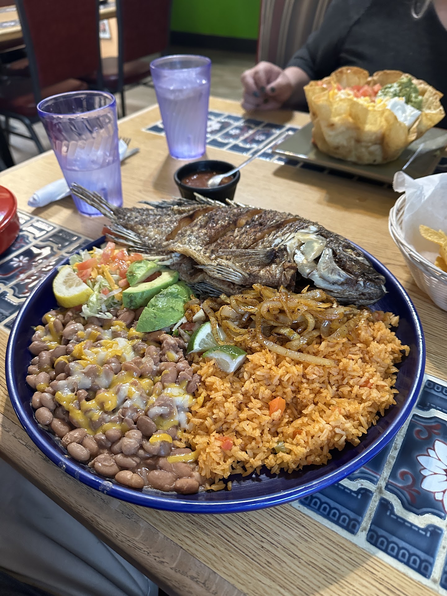 My platter looked delicious, but fell short. The fish was undercooked and raw towards the bones. It was deep fried but could’ve stayed in there a bit longer. Tilapia’s in the Mexican cuisine when deep fried are typically fried to the point you can crunch the smaller bones and the tail.
