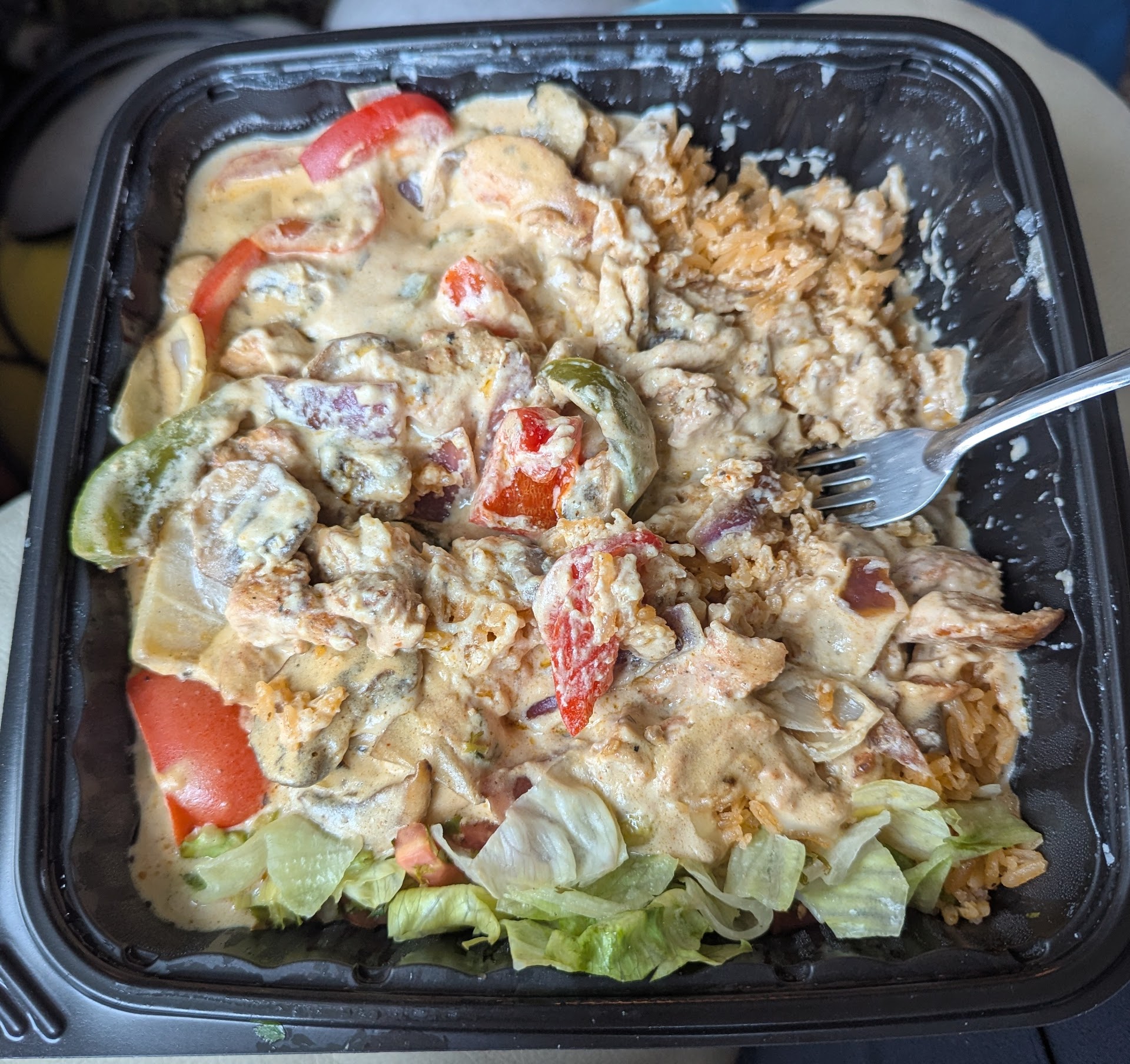 Moreover, the rice is super old and they don't cook it they warm it up. Rock hard, stuck together and no taste. Any type of meat is very fatty and not good fatty no, you can actually taste the old ingredients in there and it seems like it was sitting on the shelf for a while.