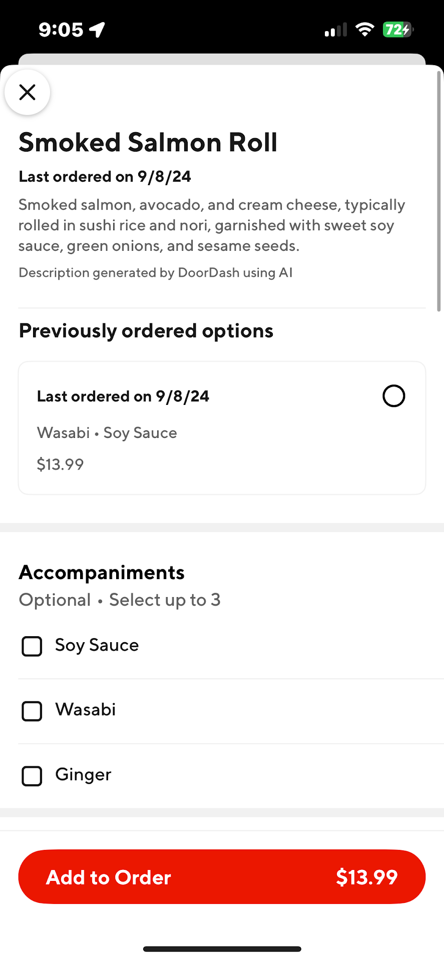 Ā Ā Ā Read moreProbably the worst experience I've had at a sushi restaurant. Food itself was alright but the way it proceeded was awkward and uncomfortable. We walked in and nobody rregarded us for a while. When we walked up to the counter, we were told to have a seat at any of their tables, so we sat. The waitress then came over and told us that we should order at the counter. So we got back up and ordered at the counter. I asked for the Aki plate which is 20 pieces of nigiri and I asked if I chose the nigiri or the chef. The waitress told me the chef would choose but I could tell her what we liked. So I explained that we liked salmon and tuna and asked that we not receive any octopus. She said the chef might charge more for extra salmon and tuna, and I told her we didn't need extra, I was just teling her what we liked, as she had suggested. Eventually she brought the plate, put it on the table, and then told me that it would cost five more dollars for the order. So I pulled 20 out of my wallet and she came back with my change. On the plate, we realized, was four pieces of octopus. I explained that what I had asked for was no octopus. She said they would replace it and when they did it was cooked shrimp nigiri, which is basically not nigiri at all. It seemed like retribution. The waitress was nice and obviously made uncomfortable by the request the chef was making of her but that doesn't really make up for the fact that the entire thing felt like a particularly uncomfortable episode of Curb...