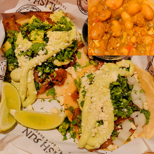ppl r rly nice & helpful (esp on the taco side..forgot pic of burger but i saw theres def some accurate ones posted here alrdy) & order was correct & tasted hot/fresh both times, but few things i wish i wlda known ahead; 1. while burger did taste gd(esp with the brioche bun, i wlda put slightly less pepper too-but thats just preference) i will say that the patties r def way too thin for the price, the most thin patty ive evr seen rly... 2. the steak & pork tacos r delicious, as r both the black & pinto beans, but the steak taco & both beans were all way too spicy for me, was definitely vry hard for me to eat them & wouldn't get them again bcuz of that (sadly, cuz the flavors were all very gd, my heat tolerance is just way too low to...